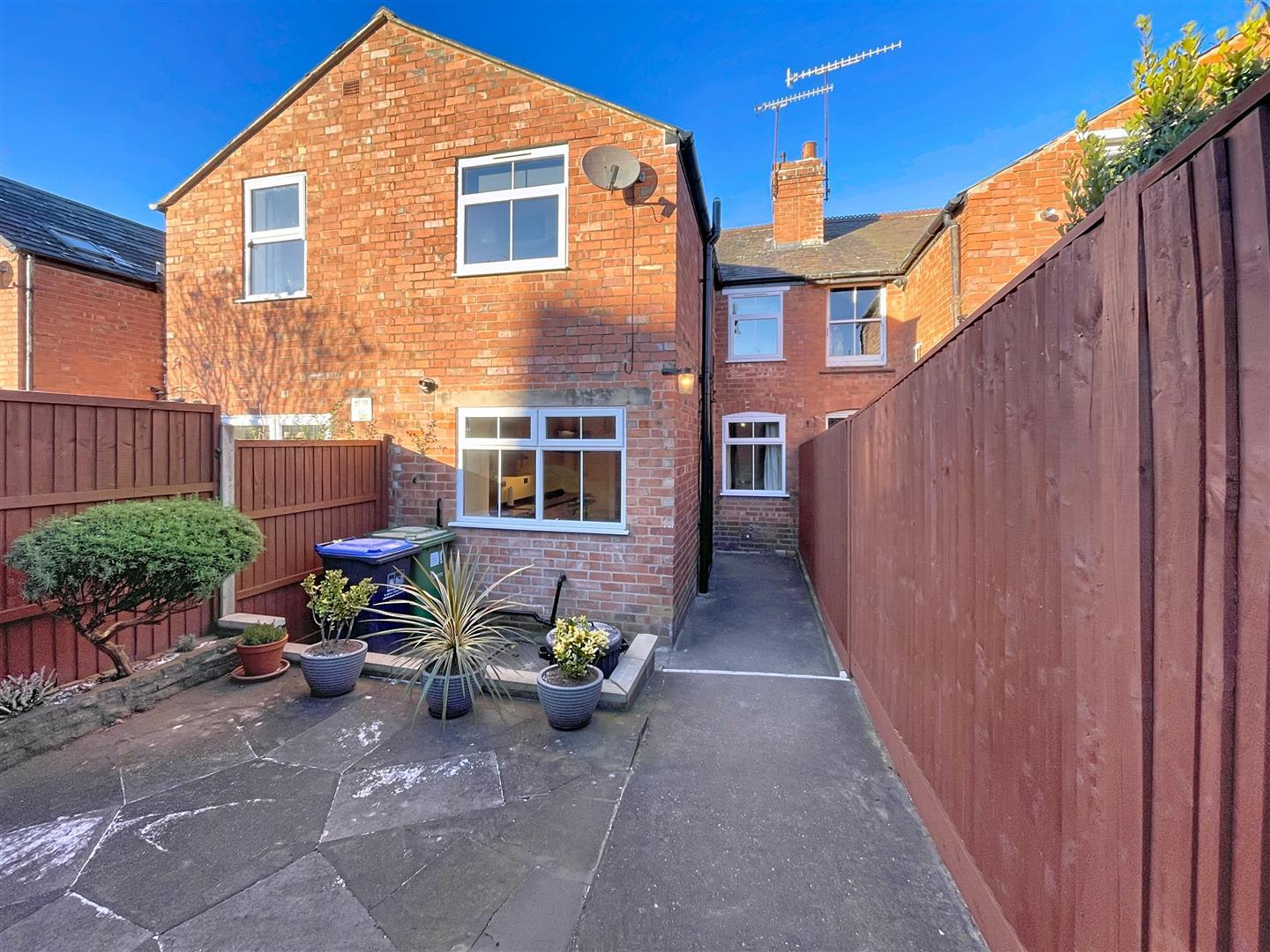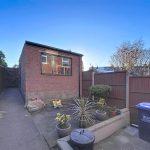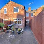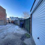 Low-maintenance paved garden enclosed by perimeter fencing, featuring an outside tap and a gate that leads to a rear service road for vehicular access to Park Road.