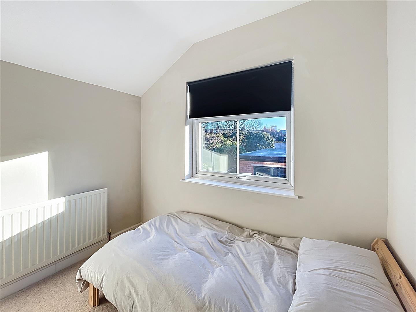 Central ceiling light, radiator, window to rear, exposed timber floorboards.