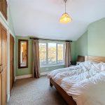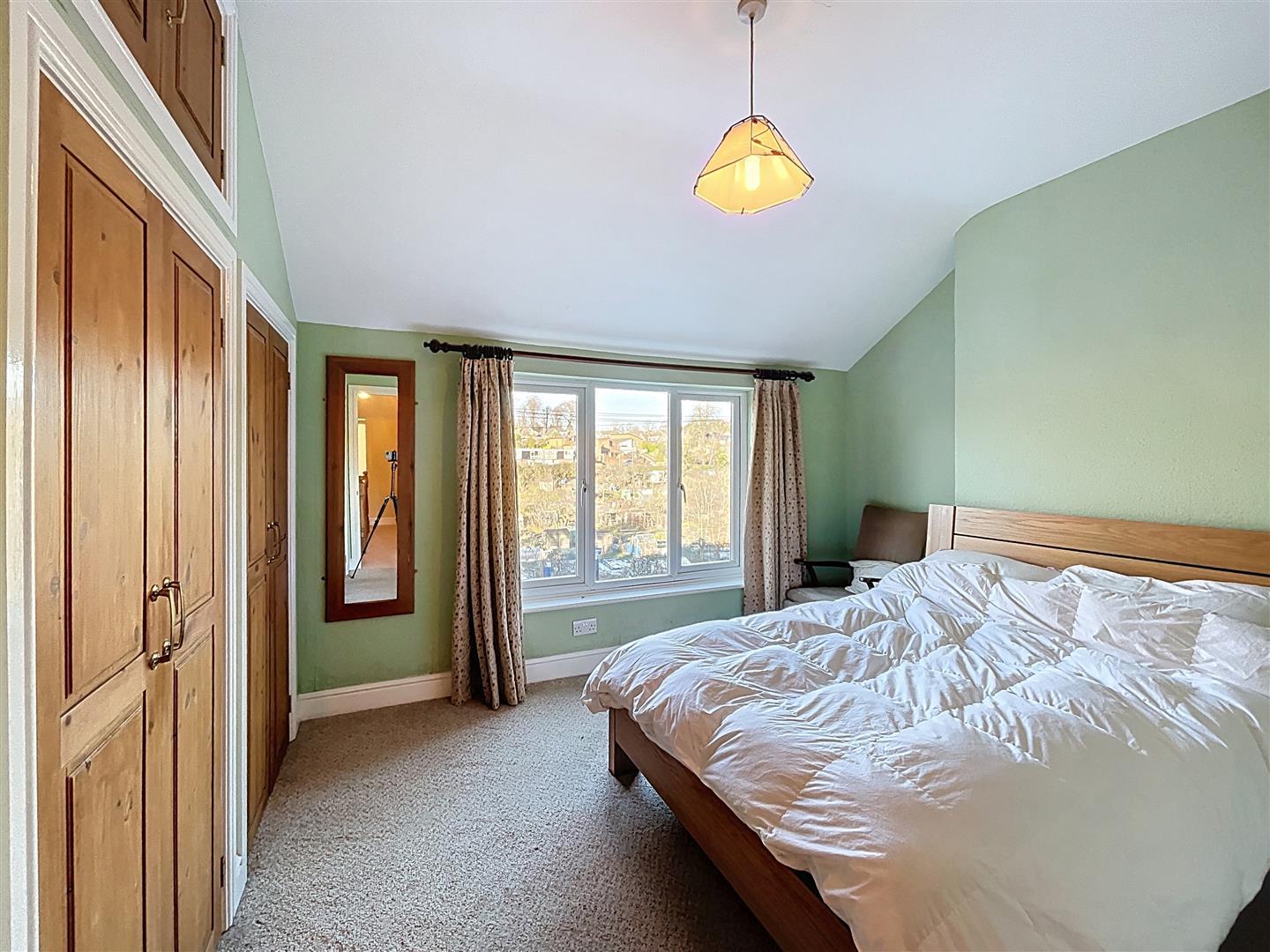 With radiator, window with views across Odibourne allotments, ceiling light, three sets of pine double door wardrobes to one wall with hanging and shelving with matching cupboards over.