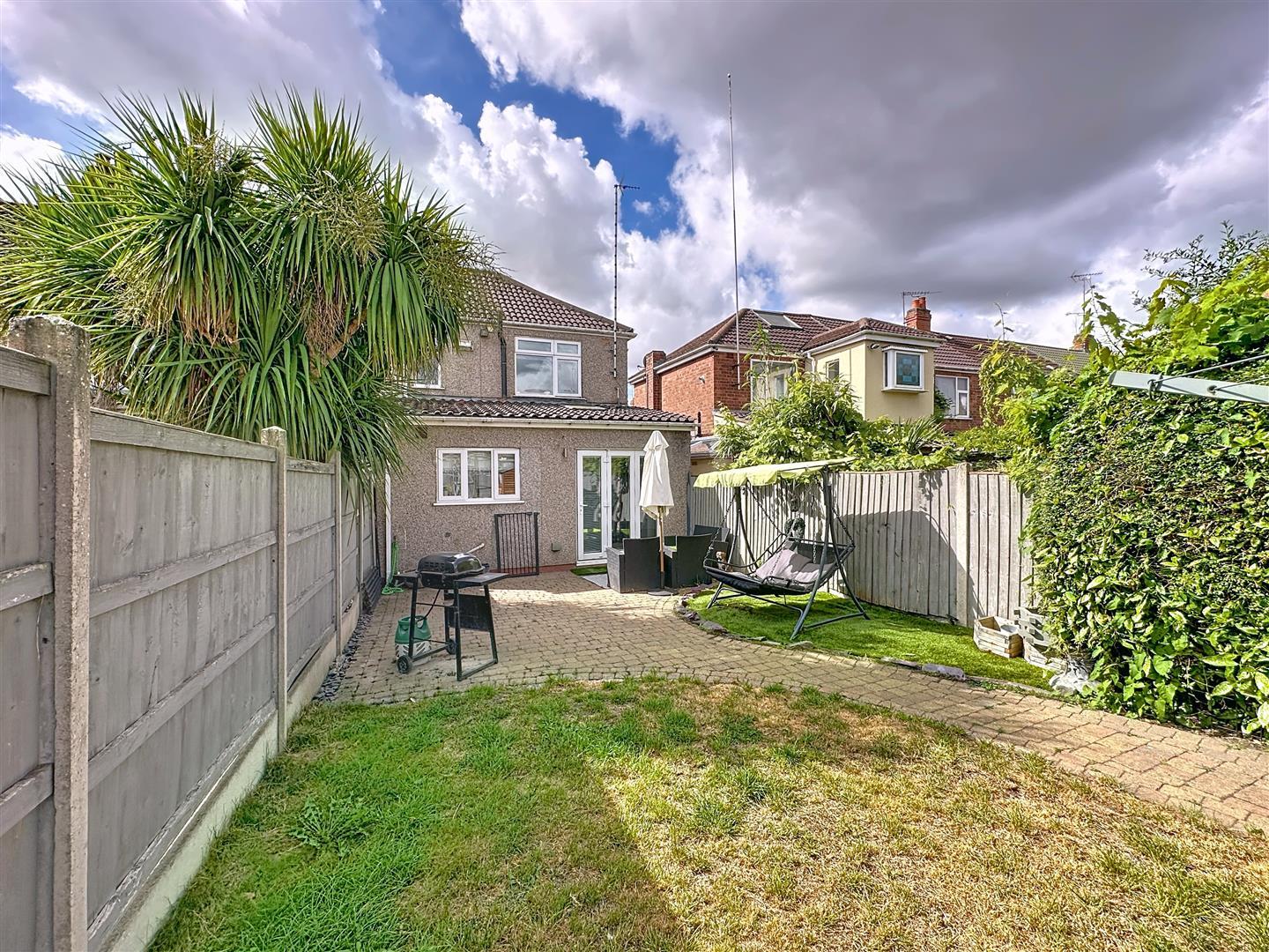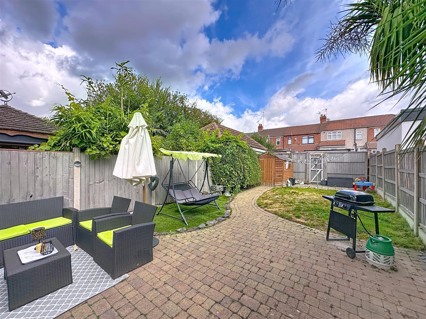 The rear garden has a full width block paved patio with outside cold water tap, power and light, and fully fenced to all boundaries, lawn with paved path and flowerbed, timber garden shed and rear access to locked and secured shared entrance.