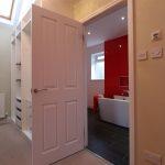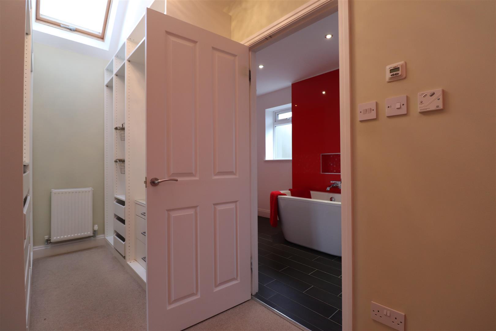 With his and hers wardrobes that have full and half height hanging, drawer units and shelving. Velux windows and a radiator. Door into the en suite