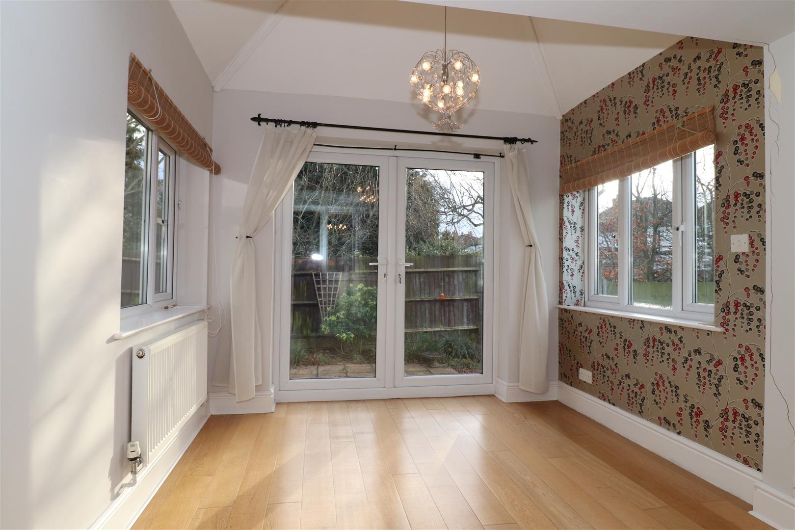Engineered wood flooring, french doors onto the rear patio with further double glazed windows either side.