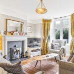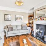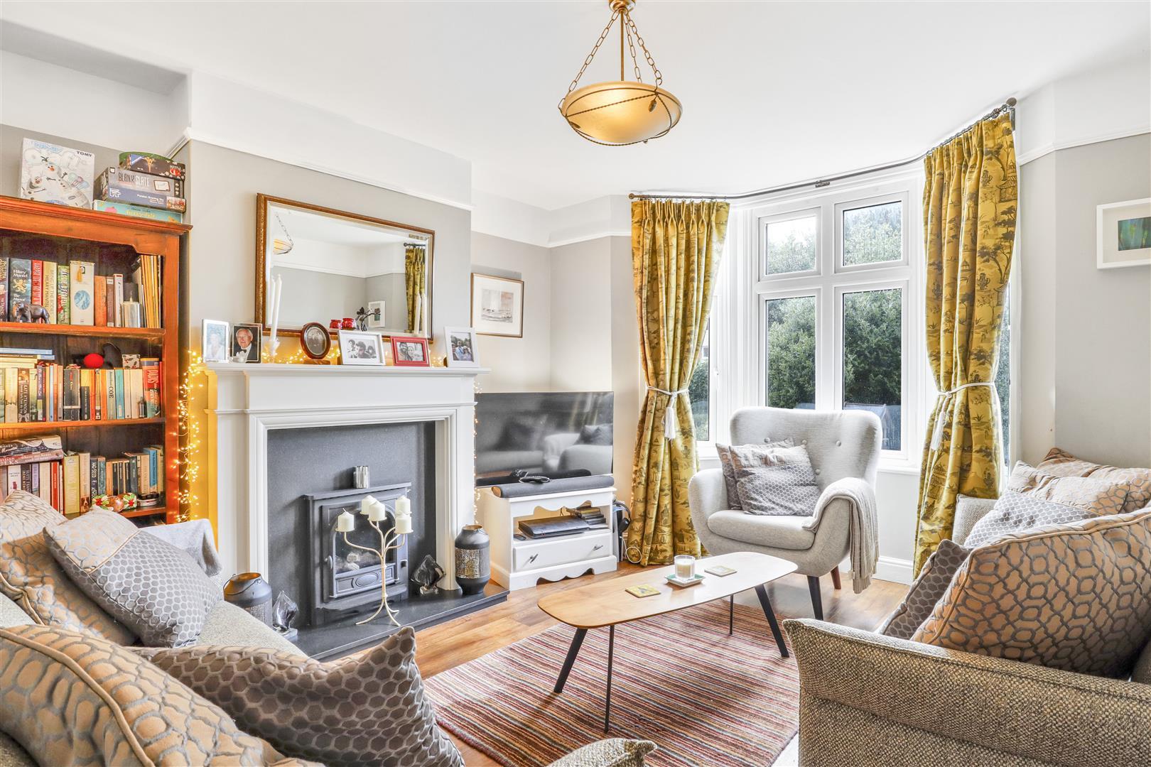 The focal point of the living room is provided by a Gazco gas living flame affect fireplace with an Adams-style surround. A beautiful bay window with privacy planting to the front elevation, picture railings, classic cast iron style column radiator and a statement central ceiling light.