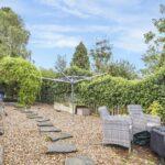 With an array of planting providing privacy and low maintenance, loose stone gravel.