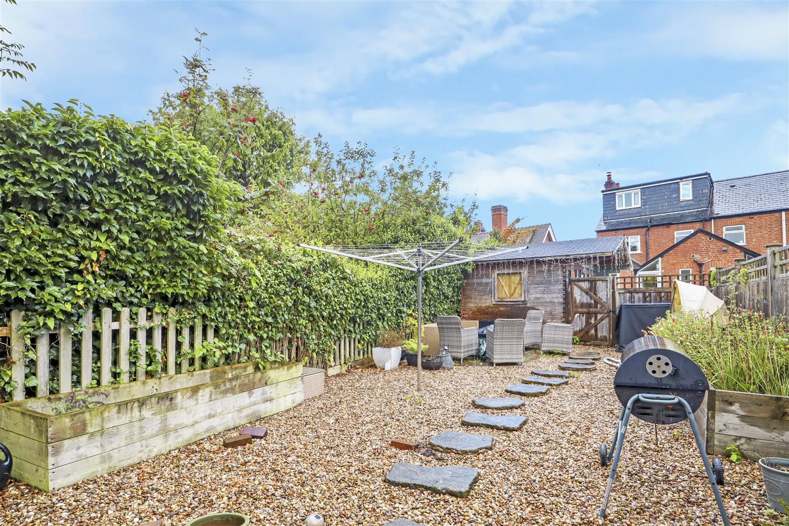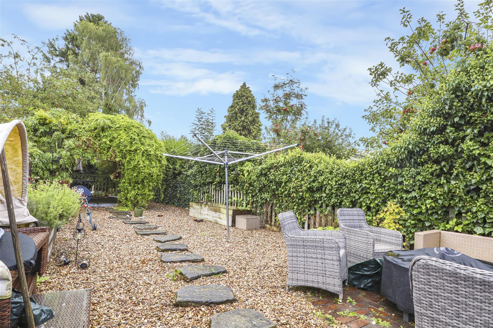 To the front of the property is a loose stone gravel with a holly bush providing privacy and a wooden picket fence with a wrought iron gate. To the side is a gravel drive that contains an easement for the three neighbouring properties to park at the rear in the shared courtyard, with a five-bar wooden gate at the entrance.